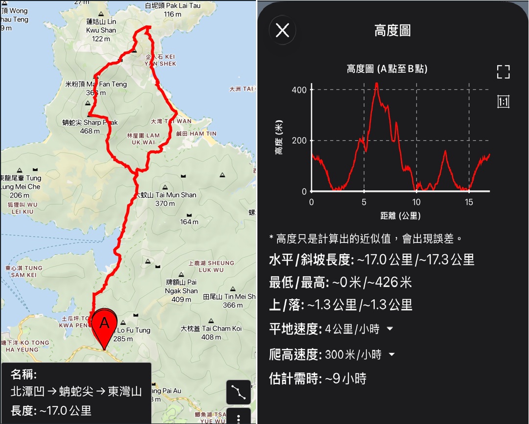 - 全程︰ 17K,△1.5K/▽1.5K,7 hr