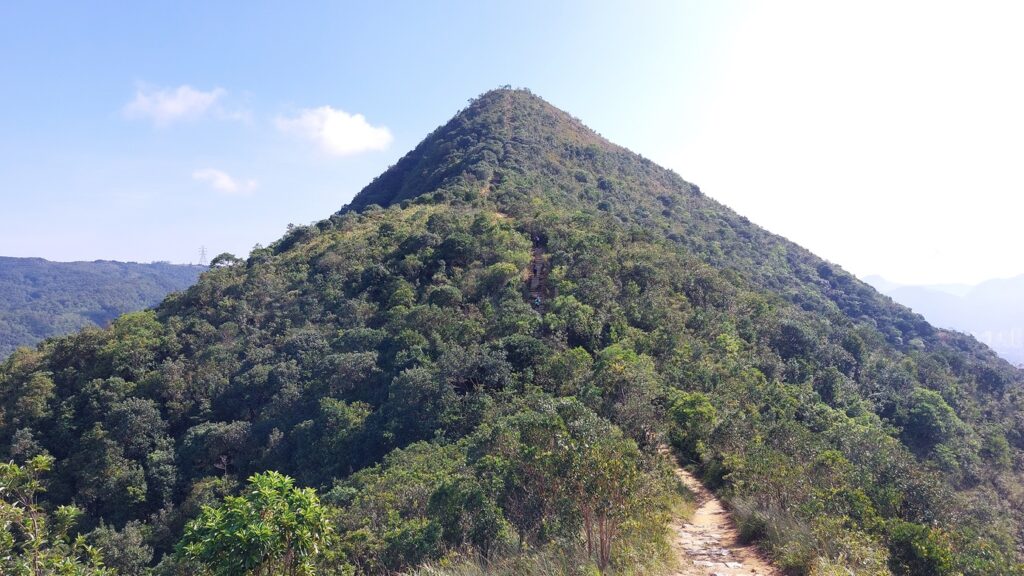 由鉛礦坳登大帽山,頭段是陡斜的梯級,既長又斜,不平整還大級,極費體力。第二段是多大石的泥石徑,大多相對平緩,有少許較陡峭,路徑有些崎嶇。末段是平整上斜林道,這段林道將近一半非常陡斜,非常考驗腳力。由鉛礦坳至大帽山頂攀升550米,攀升大,路徑多樣,是操練攀升能力的極好路線