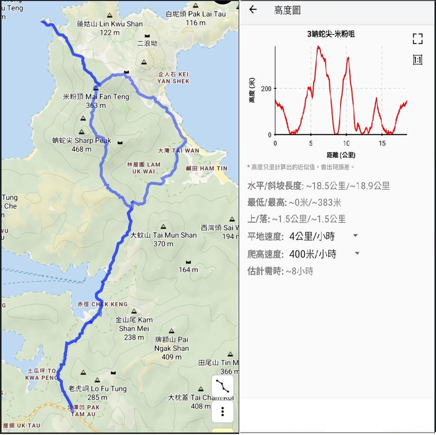 7.用時預估:米粉頂2.5,米粉咀3.5,大灣6.5,北潭凹8
