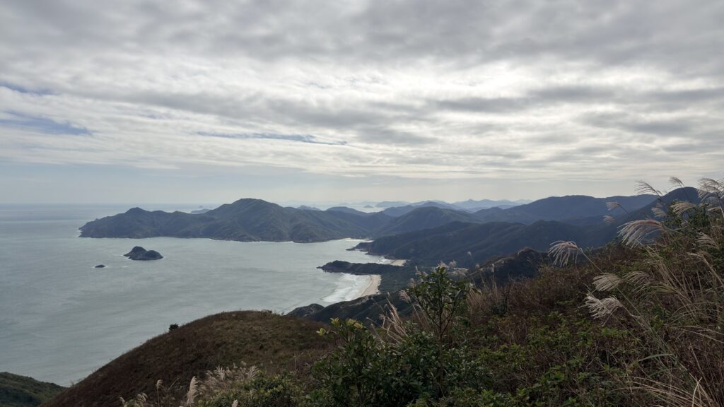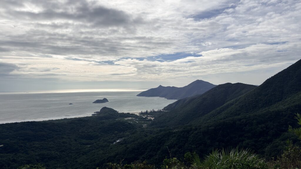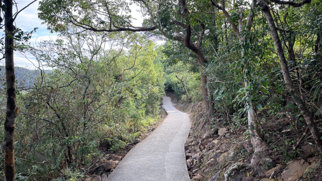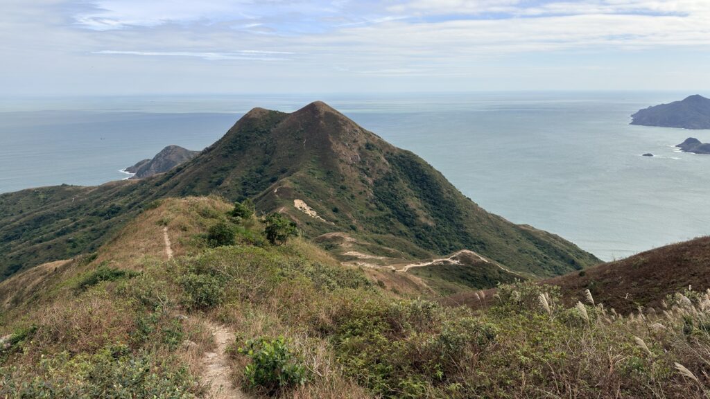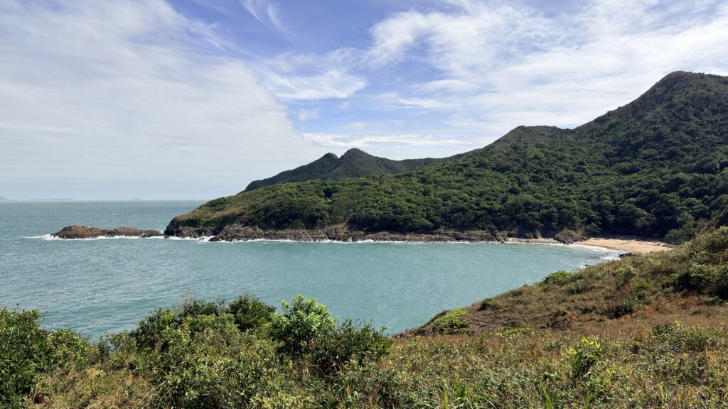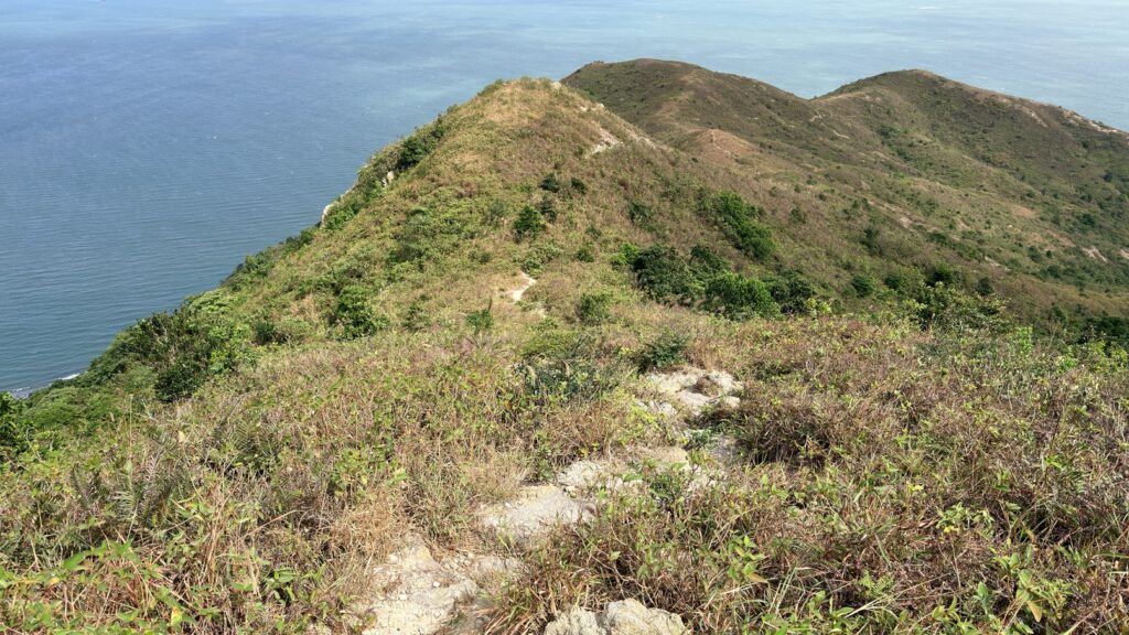 至米粉頂前,轉左小徑往米粉咀。後沿路返回,至岔路經深灣坳下降至大灣沙灘。