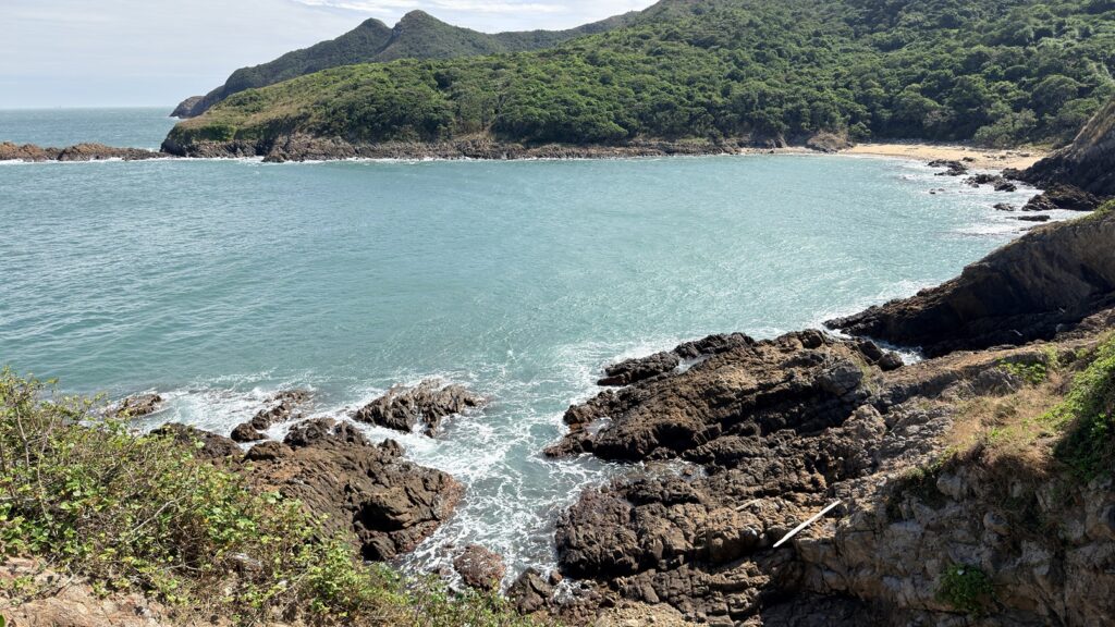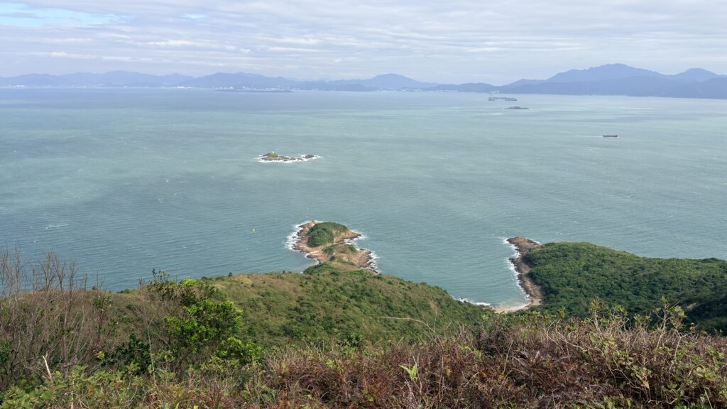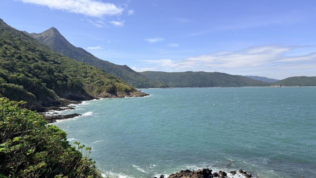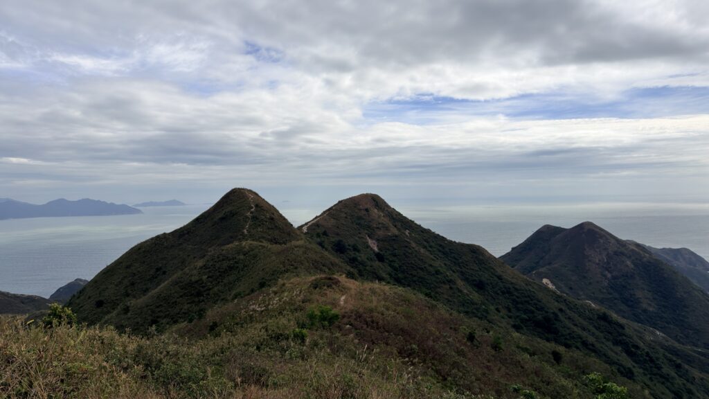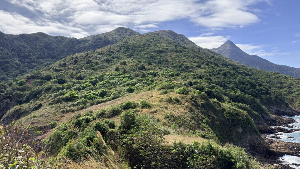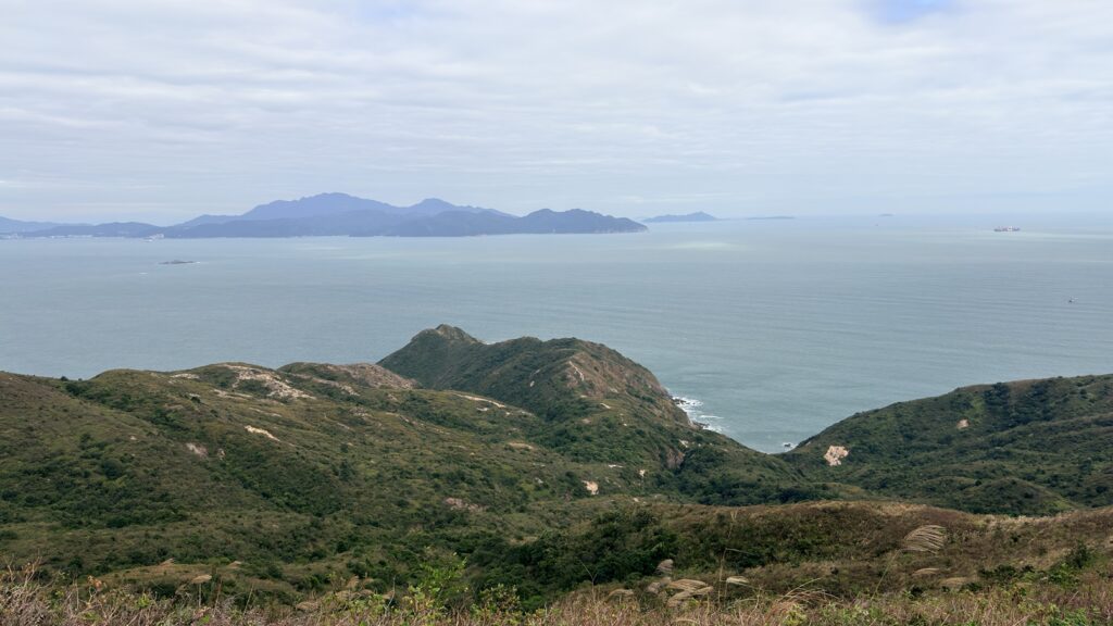 至米粉頂前,轉左小徑往米粉咀。後沿路返回,至岔路經深灣坳下降至大灣沙灘。