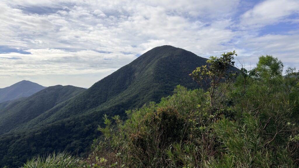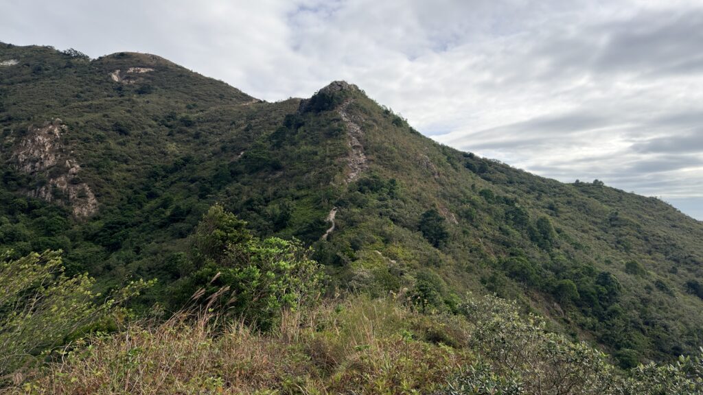 上攀兩段陡坡後,依右方的環腰山徑走至蚺蛇尖之東脊,沿東面山徑往米粉頂。
