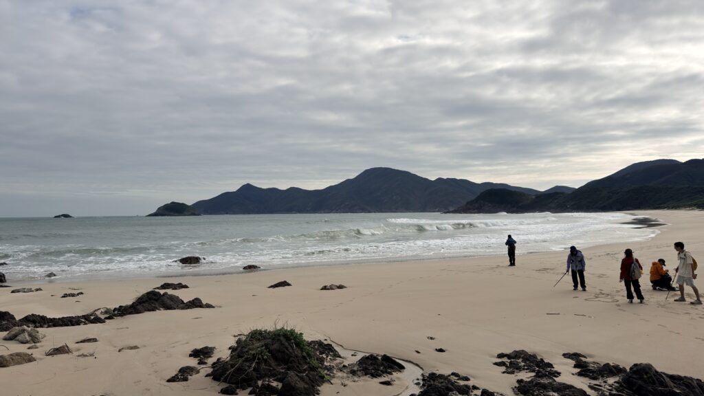 在大灣沙灘後方轉小徑至大浪村,再沿麥徑經大浪坳、赤徑至北潭凹結束。