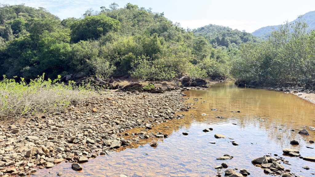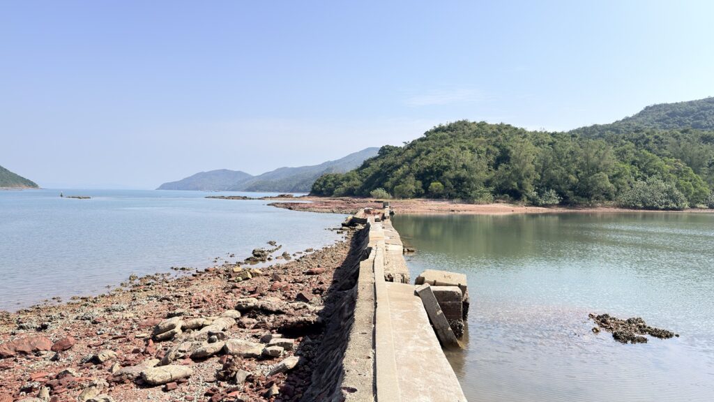過堤壩觀賞紅石後,沿右邊山徑往長窩舊村,過烏洲塘後一路向上至跌死狗。