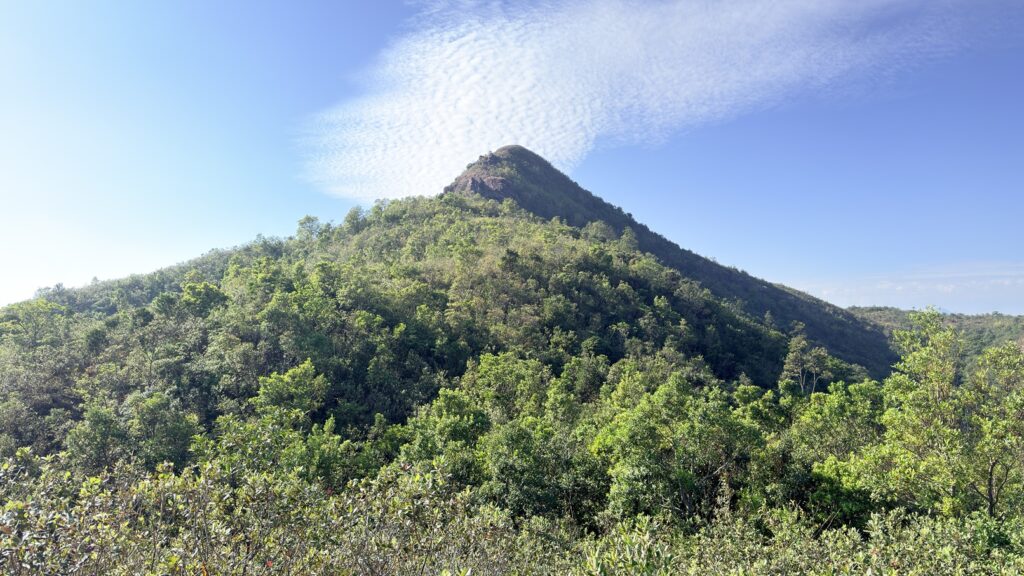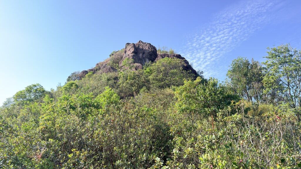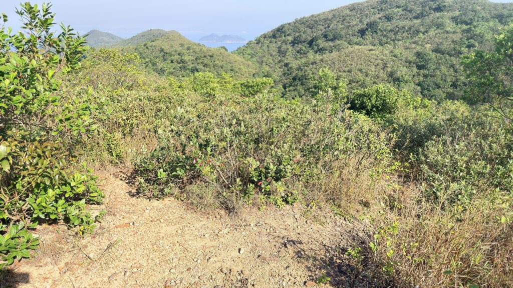 要上攀約三百米;全程荒徑,看跡象一個月內沒人行過,路徑不明顯,有時根本看不見路,不時要揾路,極易迷路;多草叢樹枝,多冧樹檔道,不時要踎低穿過,有時需繞道而行;路徑崎嶇、陡峭、狹窄,稍有不慎就會失足,或跣親。約兩K路程足足行咗兩個鐘。