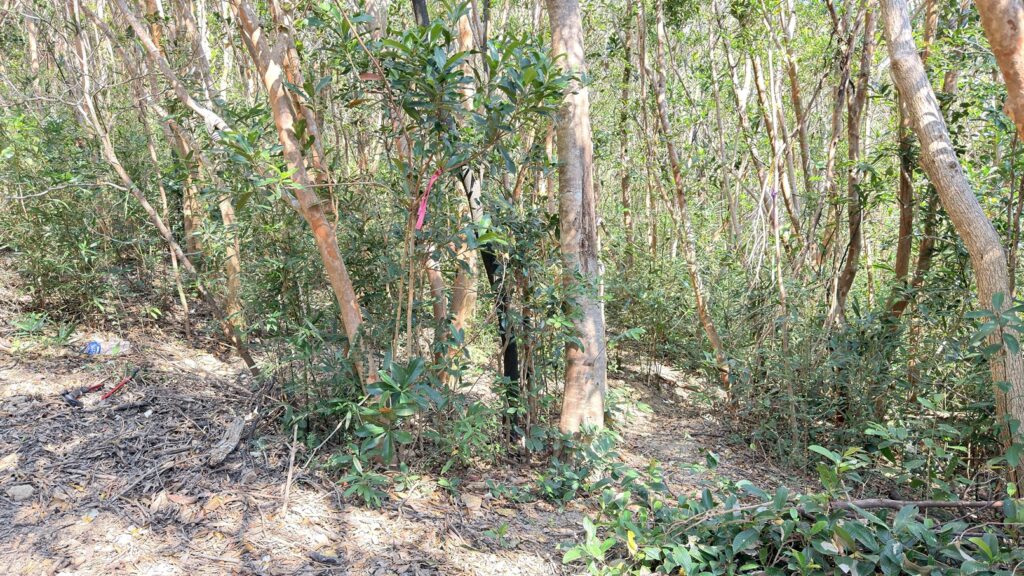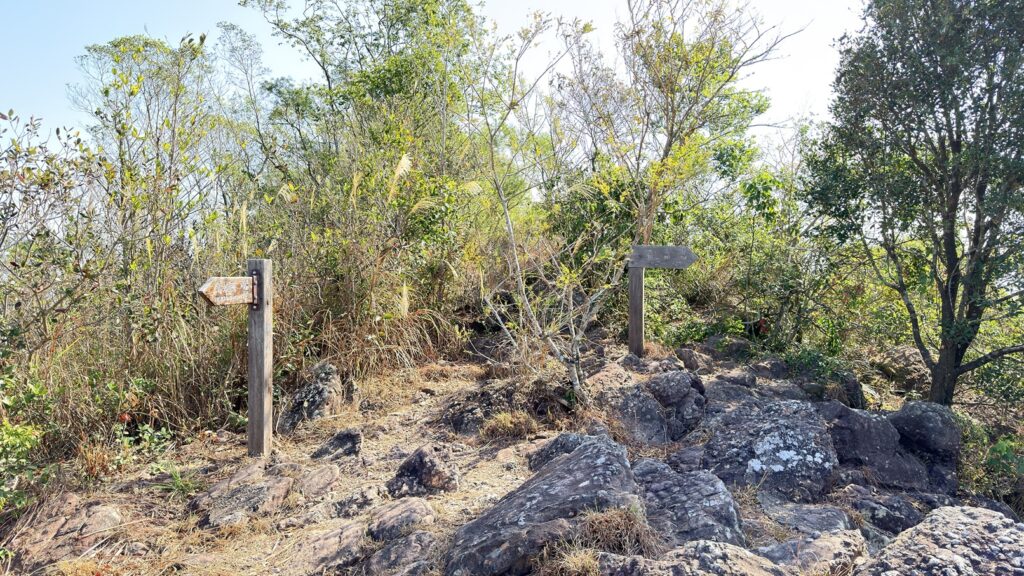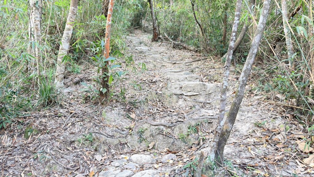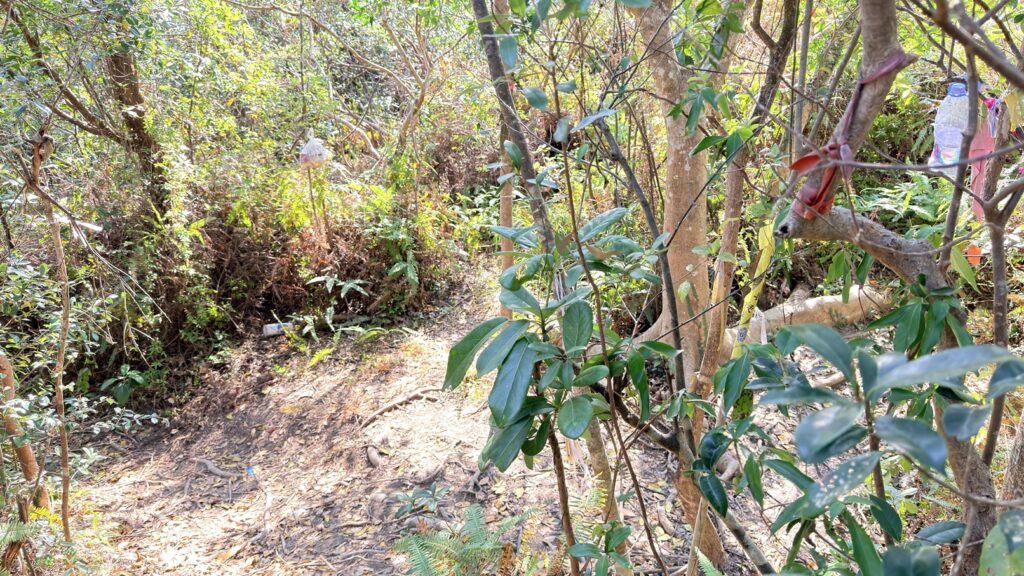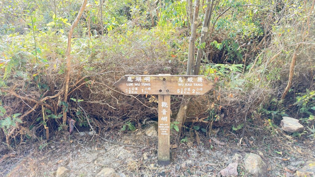 由此離開郊遊徑東行,翻過跌死狗,至鳳凰頭分岔路口,由此右轉(另一路口小徑即往黃竹角咀)。