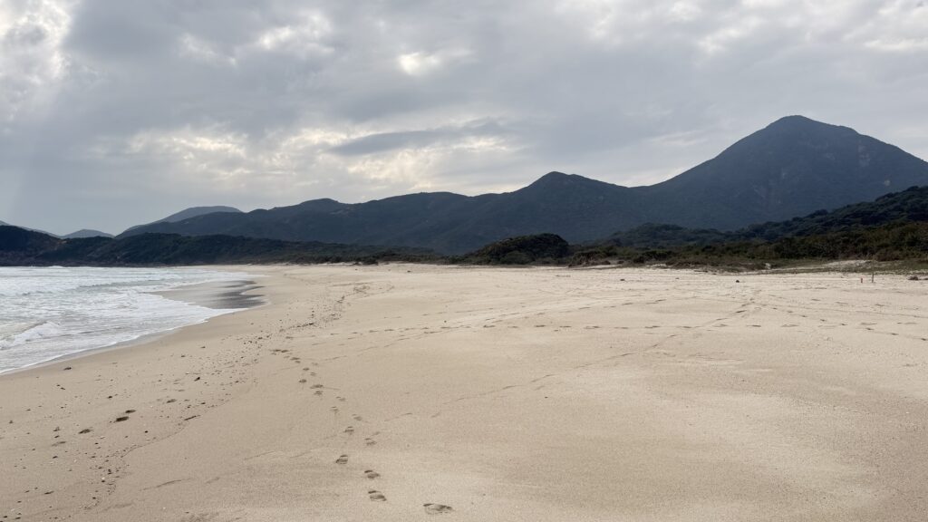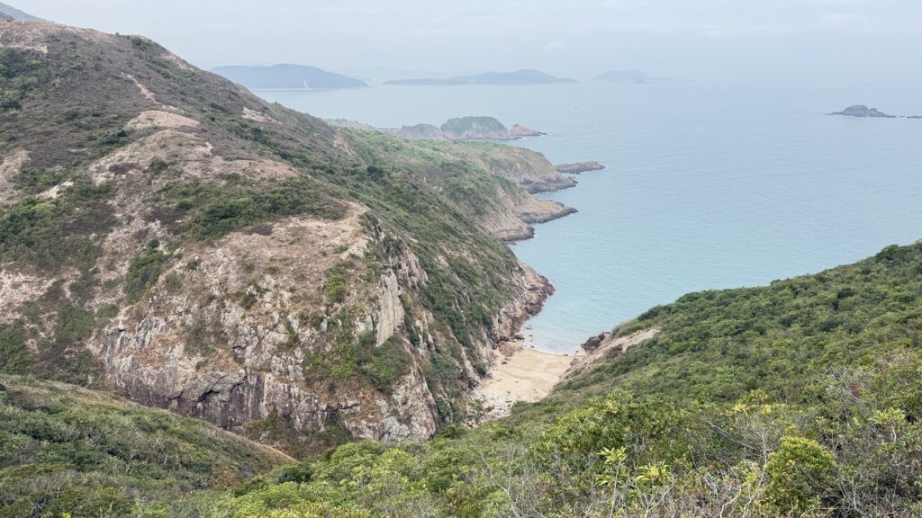 沿大灣沙灘後方小徑至大浪村。再經大浪坳、赤徑行至北潭凹結束。