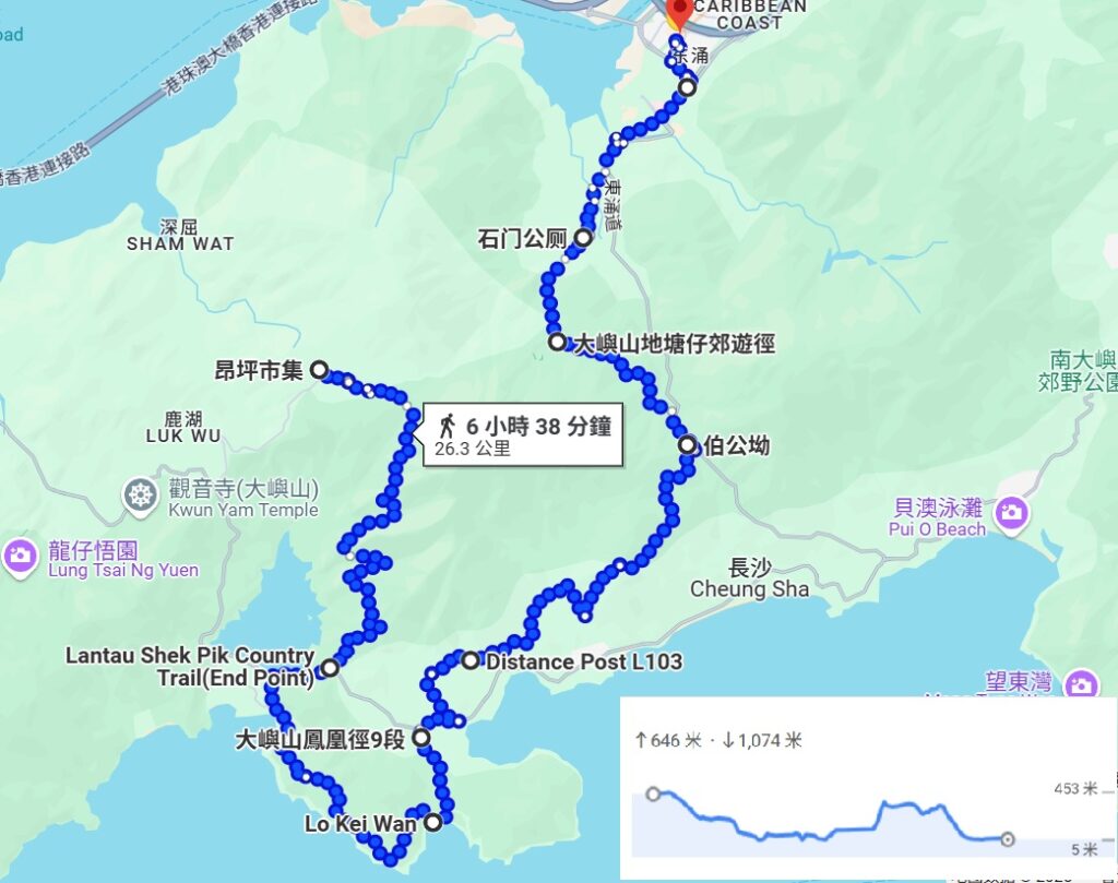• 路線︰ 昂坪➡石壁郊遊徑➡石壁水塘鳳凰徑9.10南大嶼郊遊徑➡伯公坳➡地塘仔郊遊徑➡石門甲道➡東涌站