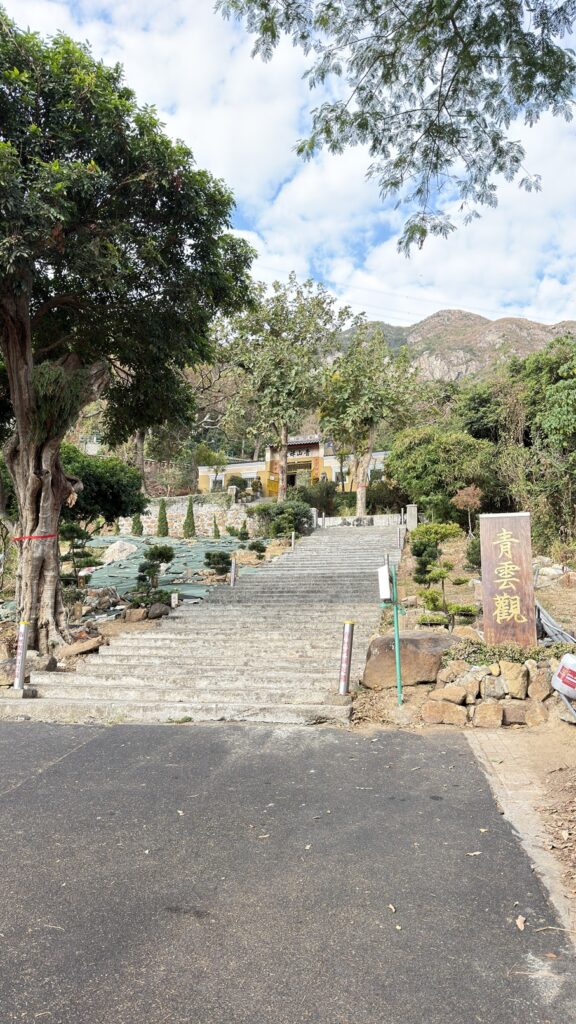 由青雲路,經興才街及楊青路轉入青山寺徑,沿斜道上走至青山禪院。
