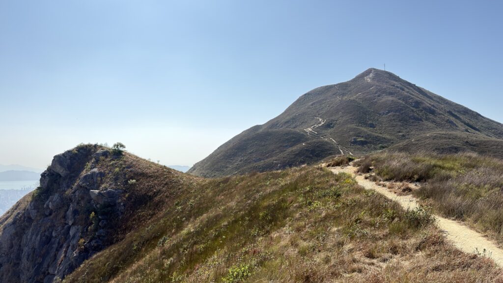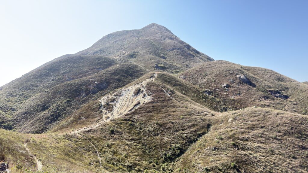 返回涼亭後,在右方巨大岩石旁的小徑行走,沿浮沙大路下降山坳,大致依山脊下降至良田坳。